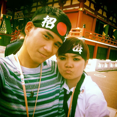 My stroll buddy, Sarah-san. We are wearing those Kanji characters on our head - Shofuku, meaning "coming happiness."